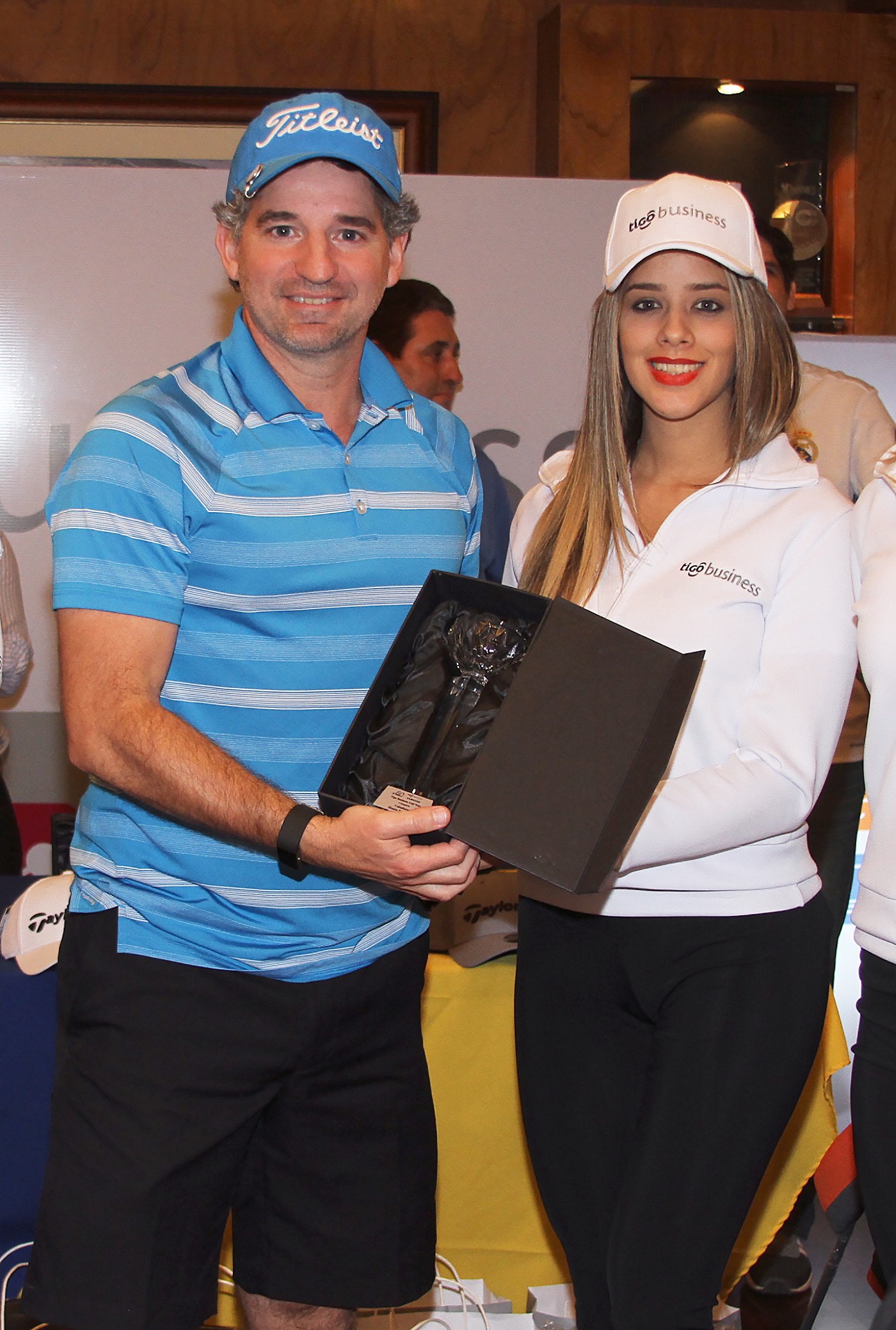 Estuvieron presentes el titular del Club, Hugo Fernando Camperchioli, el directivo Raúl Codas, ejecutivos de la firma de Tigo Bussines Nicolás De Gásperi y Rocío Giménez, así como el presidente de la Subcomisión de Golf, Mario Morlas e integrantes de la subcomisión.