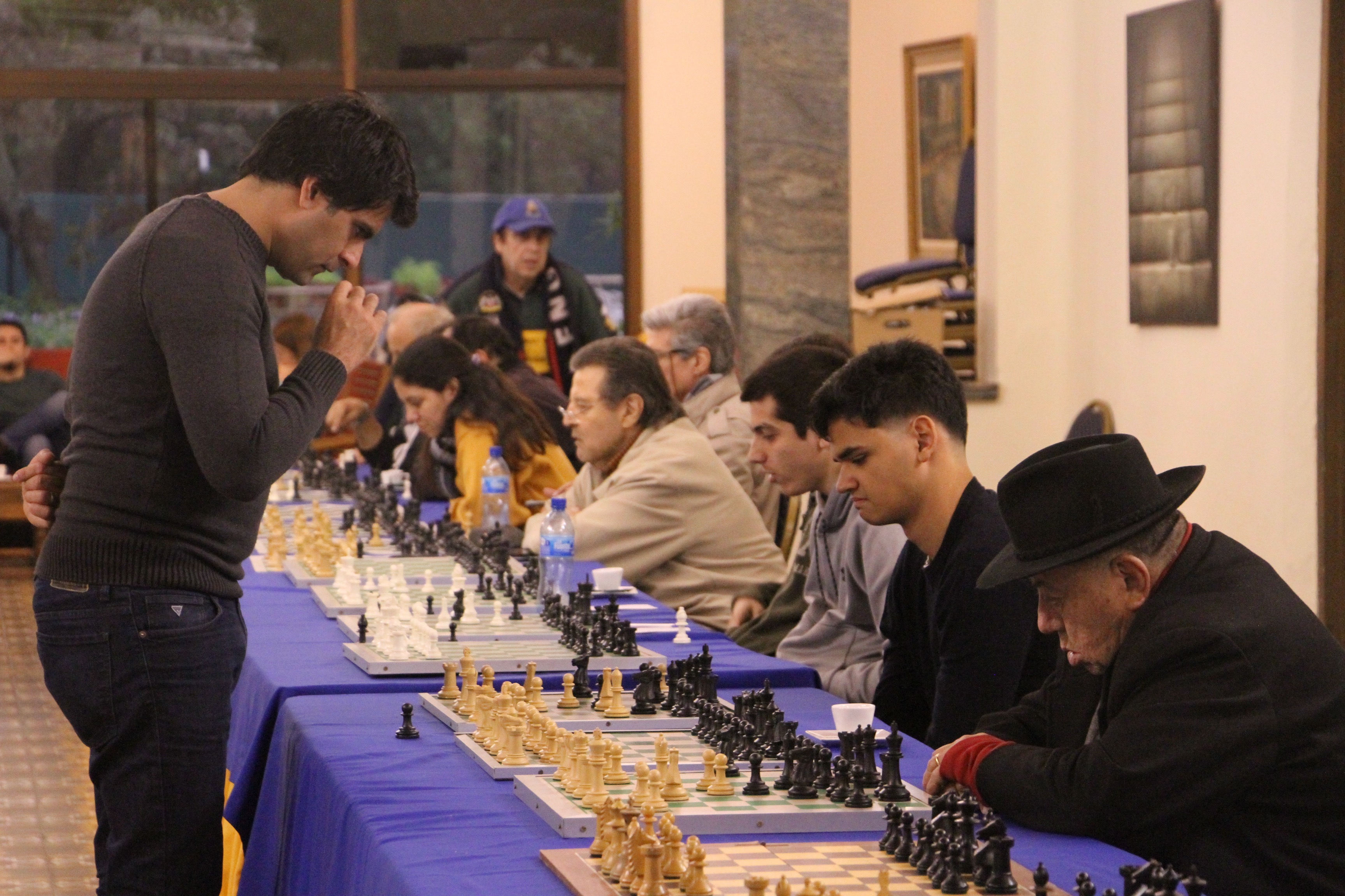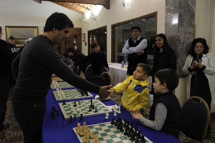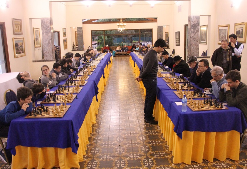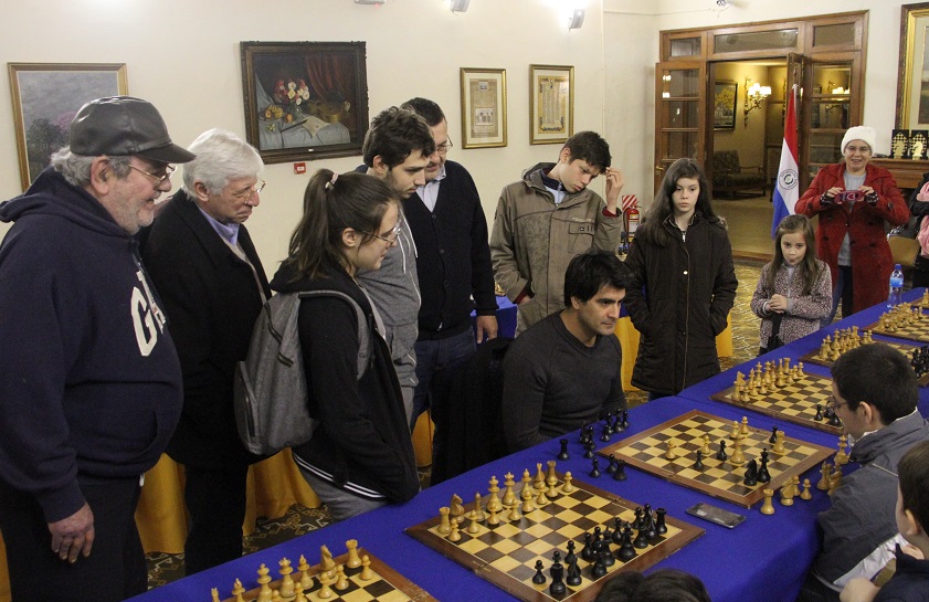 El encuentro se llevó a cabo en el Salón Fundadores. Se inició a las 15:00, finalizando cerca de las 18:30. Fue la primera simultánea que contamos con la presencia del magnífico ajedrecista.