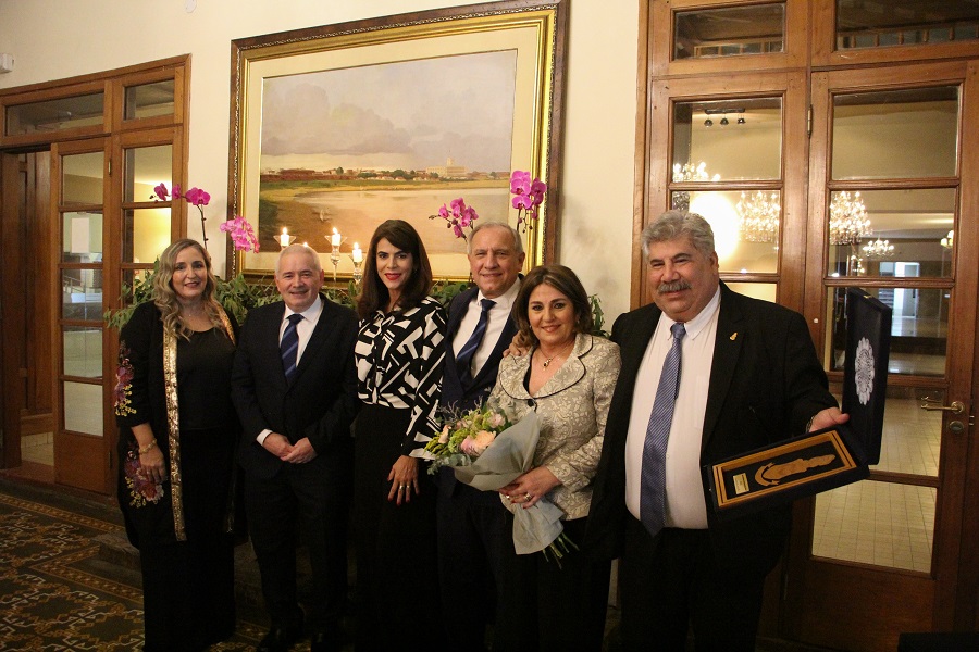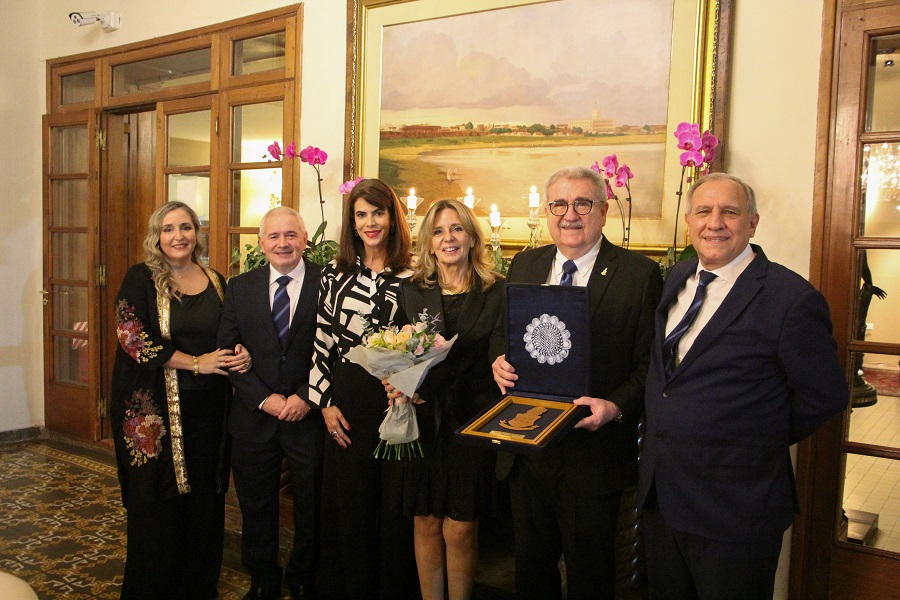 Luego realizó un brindis con todos los asistentes, y acto seguido se procedió a la entrega de plaquetas recordatorias y de reconocimiento a los directivos salientes: Felipa Mersán, Jorge Leoz y José Kostianovsky, acompañados de sus esposas, Ana Taboada de Leoz y María Isabel Vasconsellos de Kostianovsky, quienes, al igual que Felipa Mersán, recibieron un ramo de flores con tonalidades rosas, amarillas, blancas y naranja de intensidad media.