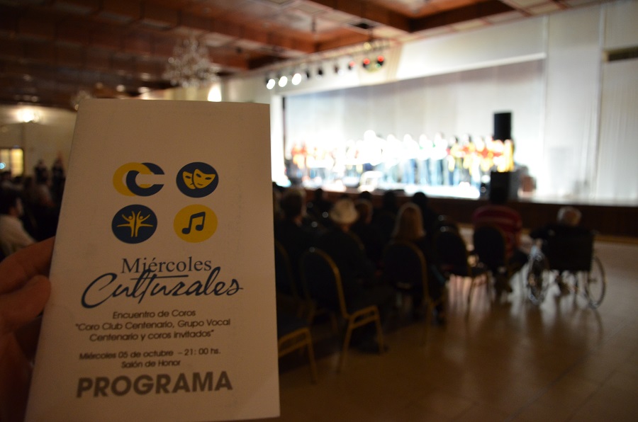 En el Salón de Honor, el miércoles 5 de octubre, los socios fueron testigos de una magnifica noche de “Encuentros de Coros”, con la participación del Coro Club Centenario, Grupo Vocal Centenario y coros invitados.