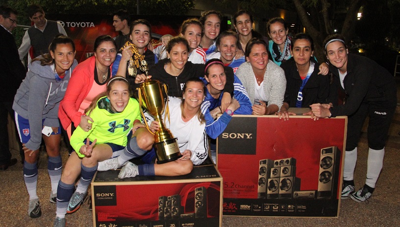 2- Integrantes de Aplanadoras, aquí con el trofeo, las medallas y el premio por la obtención del título en Primera Femenino.