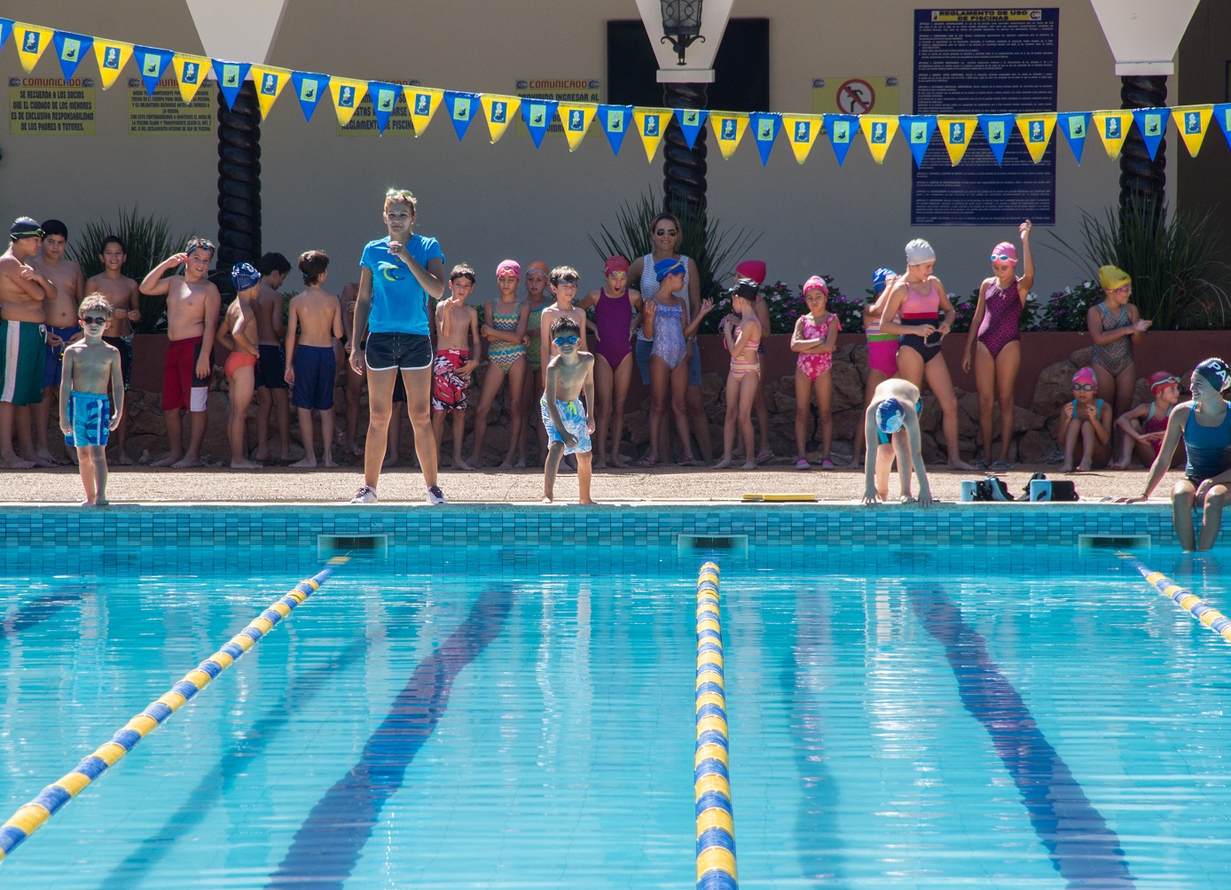 La Escuela de Natación habilitó categorías de 5 a 18 años, que contó con la orientación de las profesoras Noelia Riquelme, Yenny Cuenca, Rocío Valiente, Silvia Espinoza, Natividad Núñez y Evelyn Notario. En la segunda parte del encuentro, los atletas del plantel realizaron una exhibición de diferentes estilos de nados, con el acompañamiento de los entrenadores Luis Iriondo y Juan Pedro Hernández.