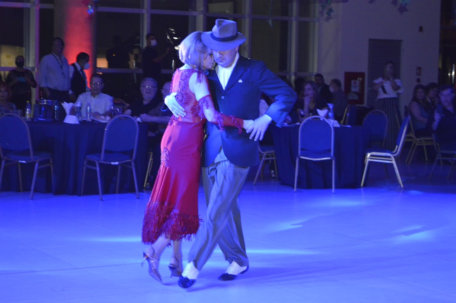 Los cantantes expresaron sentimientos con los temas Cambalache, La cumparsita, Por una cabeza, entre otros. Los artistas, convocados para la Feria del Vino y del Tango, con sus talentos musicales y hermosas coreografías, llevaron a los socios por los grandes salones de música de la época dorada del baile rioplatense, al compás del dos por cuatro.
