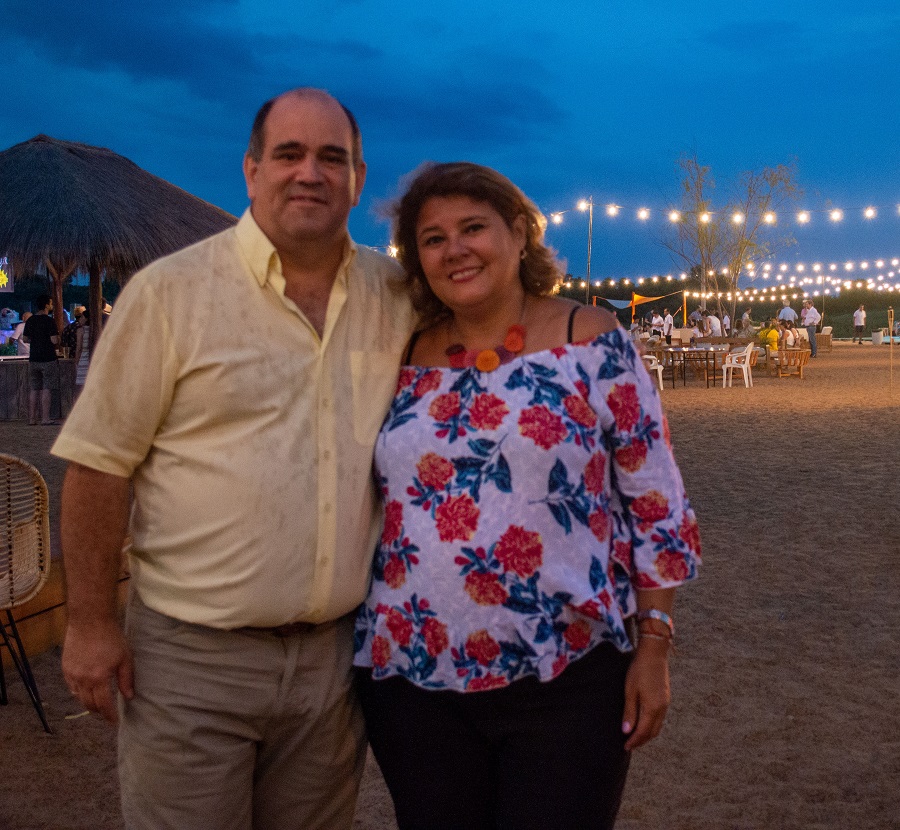 La fiesta comenzó a las 18:00 y si bien el clima amenazaba con una lluvia, lo cierto es que trajo algunas gotitas y un viento de frescura que invitaba aún más a disfrutar de una noche mágica, mientras el cantante Gabriel Monzón interpretaba canciones latinas que invitaban a bailar sobre la arena.