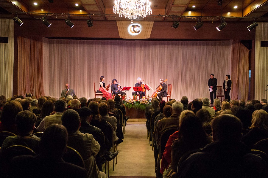 El acto se dio inicio con las palabras del presidente de la Comisión de Cultura, José Zanotti Cavazzoni quién brindó una breve reseña de la historia del grupo, que fue fundado en el año 1979. Bajo la dirección del primer clarinete de la Orquesta Nacional de Francia, Jean Louis Sajot. La agrupación está compuesta por Yurico Naganuma (primer violín); Byron Wallis (segundo violín); Laurent Jouanneau (alto) y Paul Broutin (violoncello). Todos ellos premiados por el Conservatorio Superior de Música en París. Esta es la cuarta visita a nuestro país. En esta ocasión el programa incluyó obras de Antonin Dvorak y Johannes Brahms.