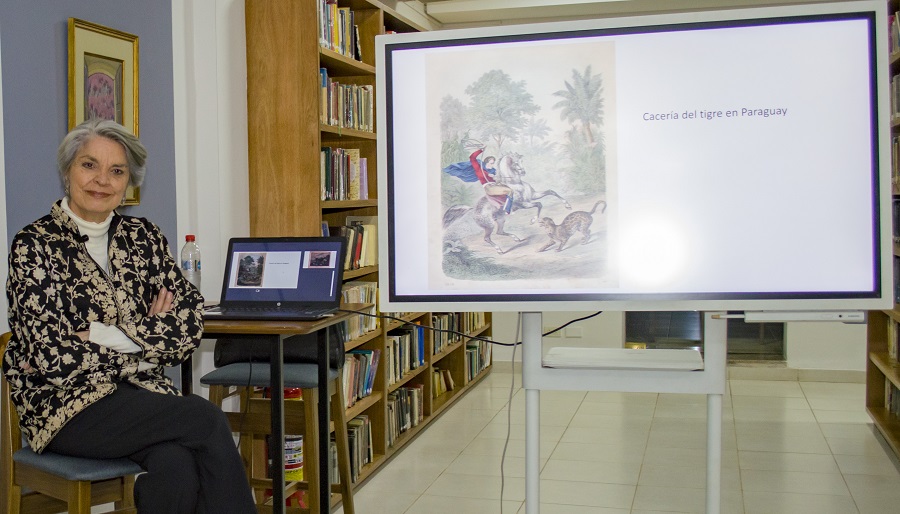 “Una imagen puede mostrar cosas que no existen en los textos”, continuó la expositora al mostrar ilustraciones sobre la historia del ocio y cómo la gente se divertía en el Paraguay.
