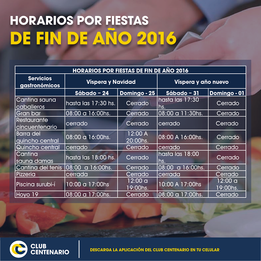 Horario de Servicios Gastronómicos del Club.