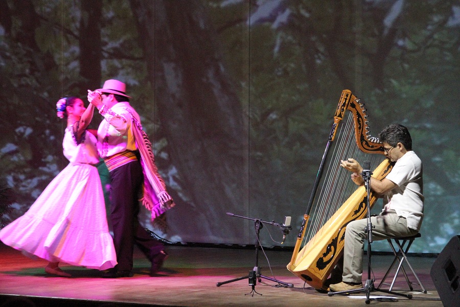 Apoyado en proyecciones de imágenes y videos de la naturaleza y de las aves con su sonido natural, además de danzas típicas y contemporáneas, la propuesta fue bastante amena y entretenida por el público.