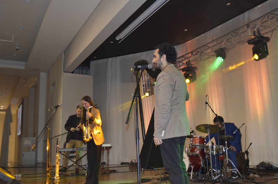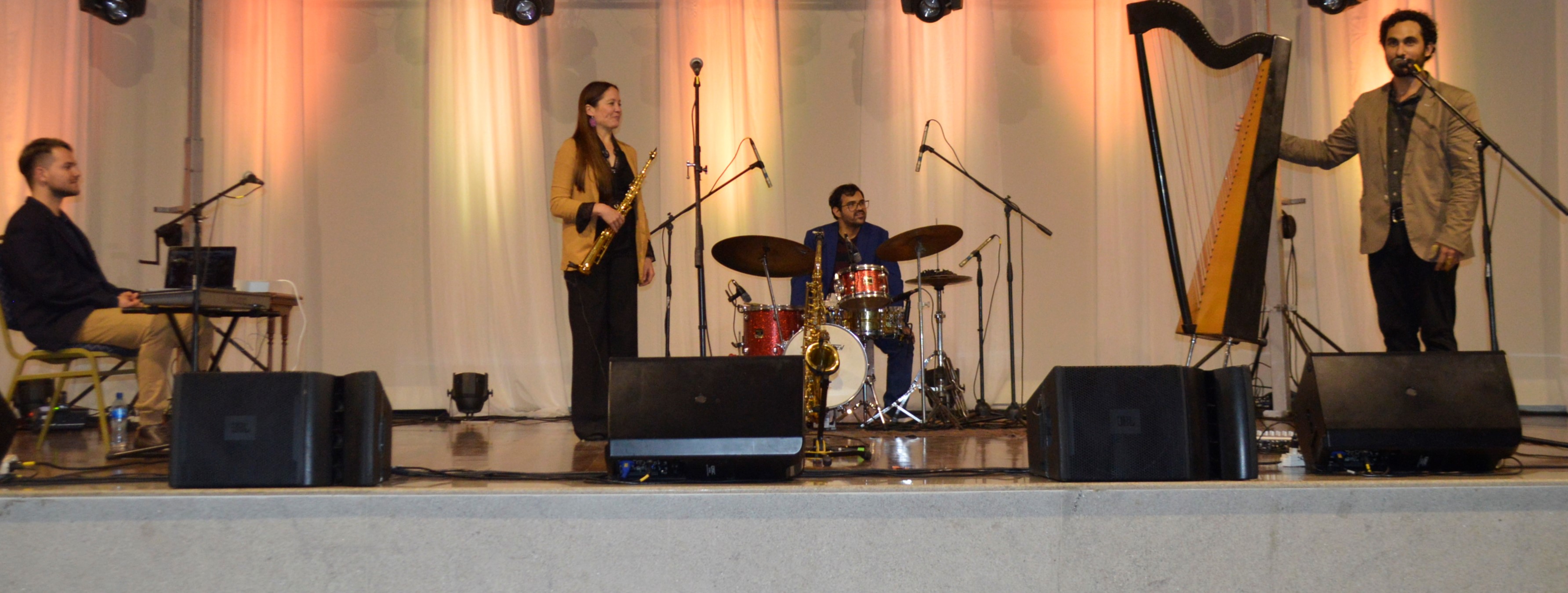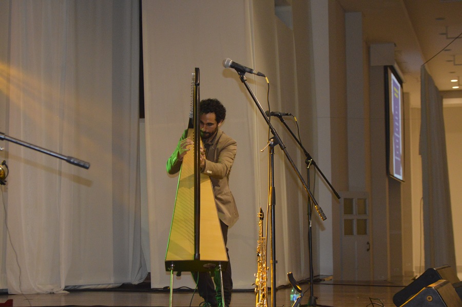 Juanjo Corbalán, junto con Lara, Víctor y Seba, está allanando un nuevo camino, al tomar su formación clásica en música y generar un nuevo sonido y alma, usando su arpa y otros instrumentos. De esos arpegios disfrutaron los socios el día miércoles 8 de junio, entre ellos el presidente de la Comisión de Hacienda, Rafael Aníbal Heisecke Gómez, y la presidenta de la Subcomisión de Cultura y Cine, Ana Martini, quien presentó a los artistas y realizó una reflexión sobre la cultura en el Paraguay, resaltando, precisamente, el fortalecimiento y la valoración de nuestra identidad, de nuestra música.