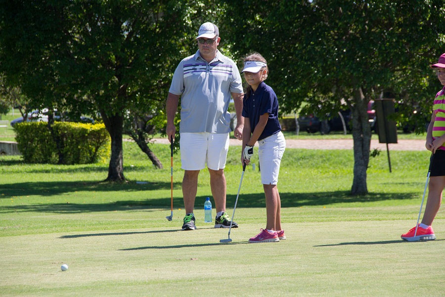 Los participantes ocuparon toda la cancha par 3, con la compañía de los padres que orgullosos siguieron de cerca a sus “pequeños ídolos” que ofrecieron sus mejores golpes a la pelota. Cerca de cuarenta hijos de socios inscriptos formaron parte del mencionado torneo que fue organizado por la directora de la Academia de Golf del Club, Katia Meyer, y el gran respaldo de comisión de padres de los minigolfistas.
