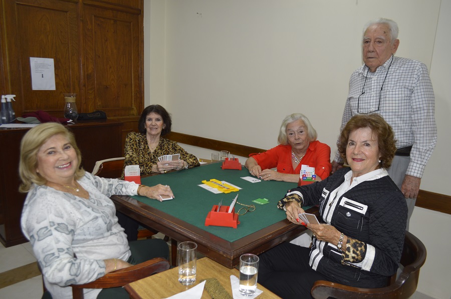 Las socias que juegan al bridge abrieron la temporada con una grata reunión entre amigas el día 7 de mayo, desde las 15:00. Orquídeas amarillas y la insignia del Club Centenario formaron parte de la decoración de la sala, donde compartieron juegos en un ambiente entretenido y cordial.