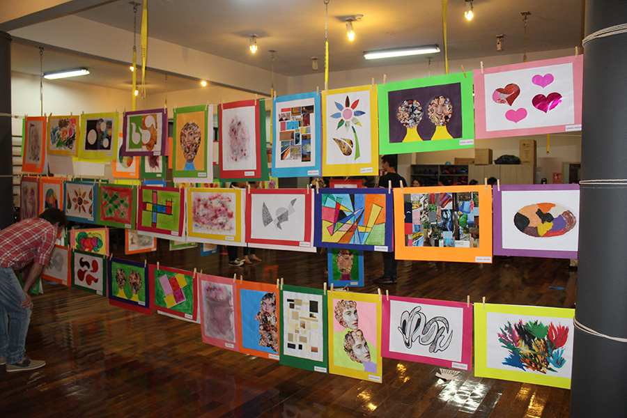 En la galería se observaron distintas temáticas de trazos y pinturas. Cada participante aportó a su propio trabajo lo aprendido, como recortes de revista en collage, utilizaron una variedad de materiales como papel sifón, acuarela, punzón, tijeras, entre otros.